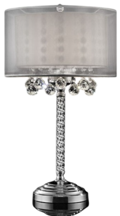 Go traditional with hanging crystals and a polished chrome base. This table lamp also features a double shade that evokes class and luxury. Ideal for living rooms, bedrooms, or offices, it supports everyday tasks while adding a warm, comfortable glow to the surrounding space.Read More