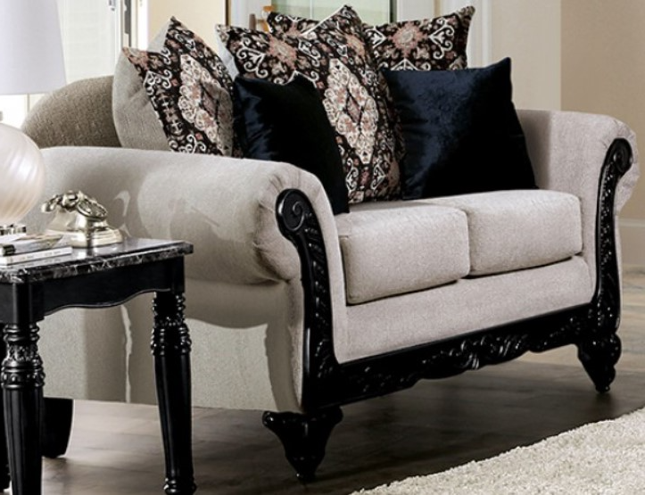If darker woods and a starker contrast is your thing, then look no further! This stunning traditional design pairs a soft light brown chenille fabric with black finished frames for an aesthetic that is hard to forget.Read More