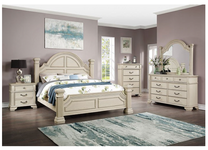 Turn any bedroom into a luxurious getaway with this beautiful ensemble. A unique arched trim layout is the centerpiece for the bed, while traditional elements such as the headboard's bell shape, bracket feet, and the bold reeded posts combine to create a sense of regality.Read More