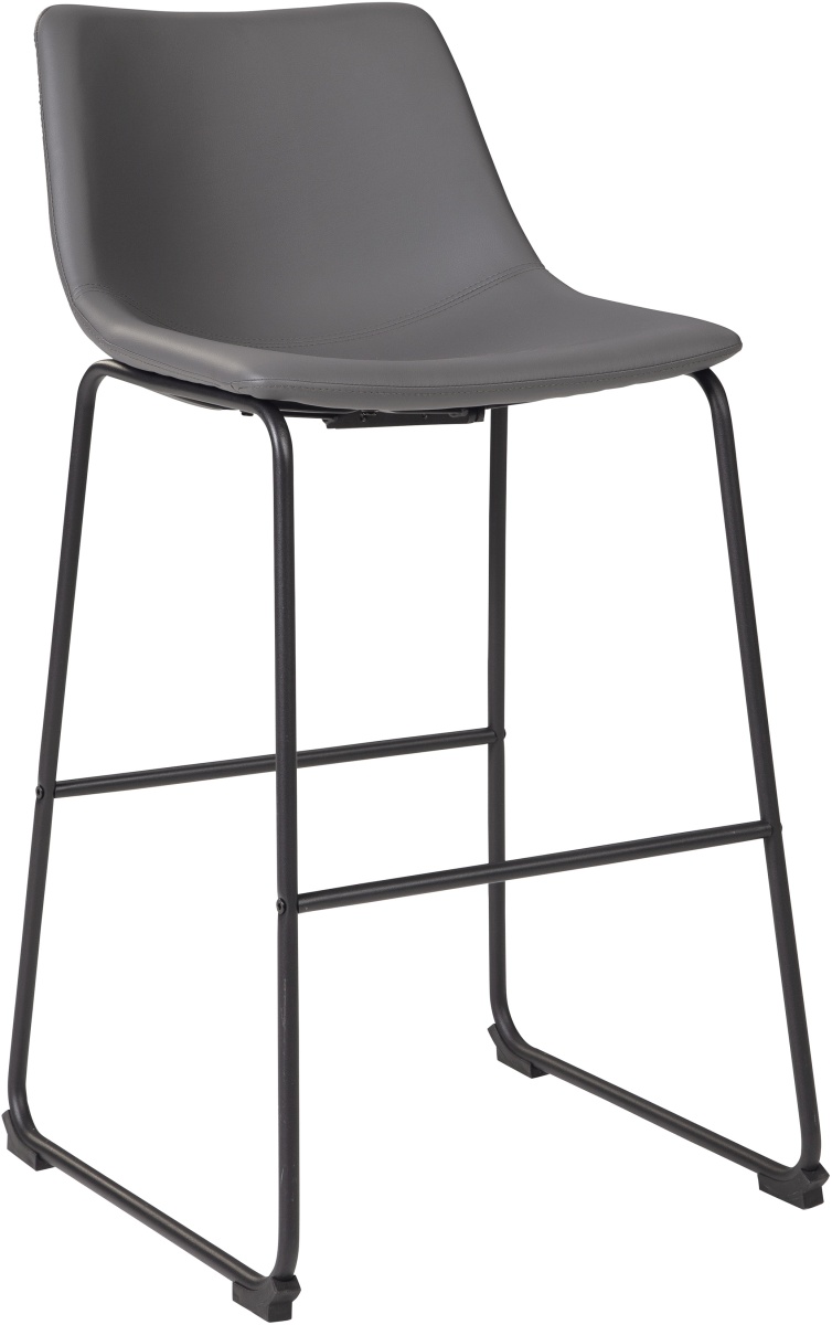 With its distinctive contoured bucket seat and tubular metal base, this bar stool serves up a fresh twist on mid-century inspired style. Chic gray faux leather upholstery adds to the aesthetic. What a timeless look for eat-in kitchens and casually cool dining rooms.Read More